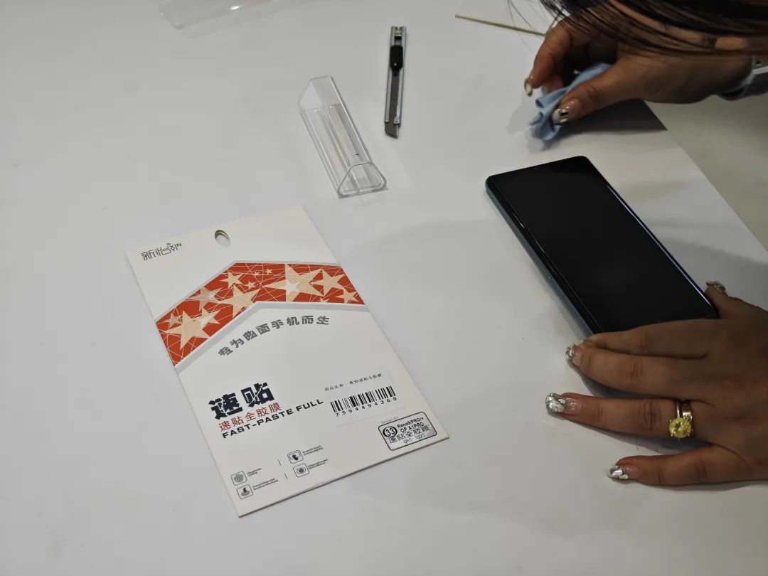 不用預約直接到店就可以貼,雖然給手機貼的同樣是軟膜,但是貼完後手機還在機器裏照了兩分鐘紫外線進行光固,膜的手感最接近原廠。