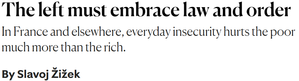 (作者是斯洛文尼亞哲學家。本文原題“The left must embrace law and order”,見於英國《新政治家》週刊,2023年7月5日一期,7月4日上線。正文中的斜體字和超鏈接為原文所有。譯者聽橋,不保證正文理解準確。)