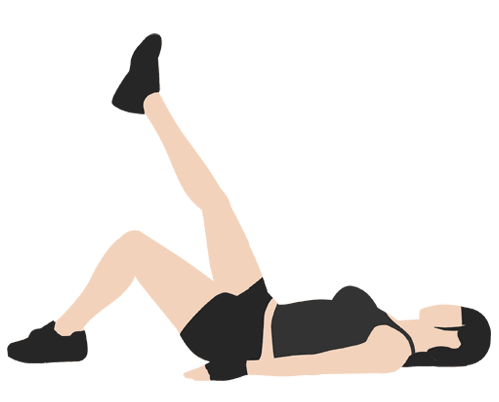 一腿屈膝踩實,另一腿伸直離地,發力將臀部抬起至屈膝大腿與身體呈0°角,臀部抬起時上背部支撐地面。