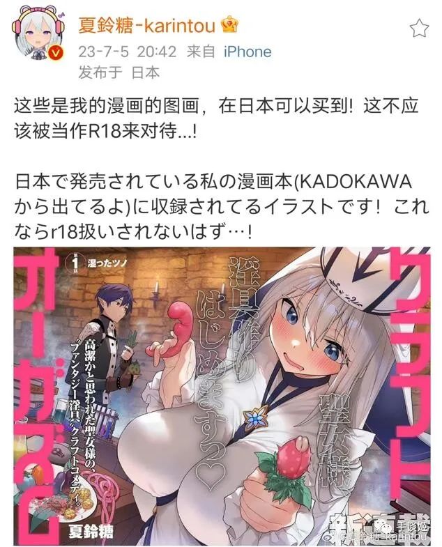 儘管她表示這並非R18的漫畫,但確實是H的擦邊球漫畫就是了。不過“巨乳仙人”的名號和這本漫畫關係不大,而是有國內網友在這則博文下方留言説,“微博上的巨乳會被限流”,令作者大驚失色。