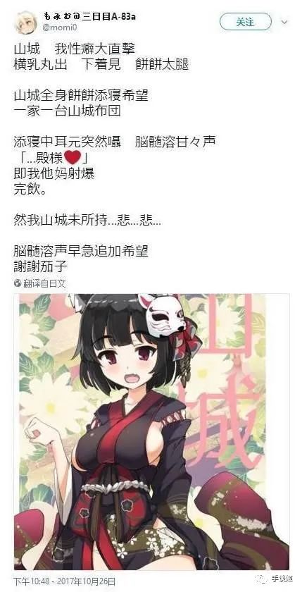 話説回來,2017年左右的時候,正好是《碧藍航線》上線日服的時候,當時“偽中國語”正好火爆了一陣子,“謝謝茄子”的説法就是在當時產生的。