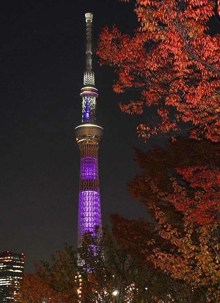 日本東京, 晴空塔點亮紫色霓虹燈,呼籲根除針對女性暴力。