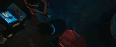 這本是簡單的招手,卻用這樣的鏡頭表述——表示這個動作其實是在招呼狗。