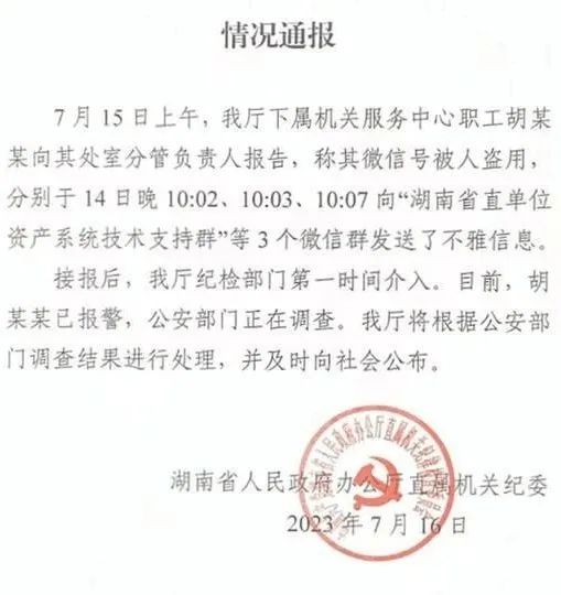 事情大概大夥都知道了,湖南有一個微信賬號(斯基覺得自個兒用詞越來越嚴謹)在微信羣裏發了三條消息: