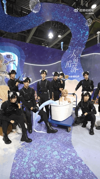 但在KKWORLD上,《人魚陷落》擁有自己的展館與如此“隆重”的COS。一個蘭波被一羣長腿細腰的白楚年簇擁着……快看也是太懂大家想看什麼了。