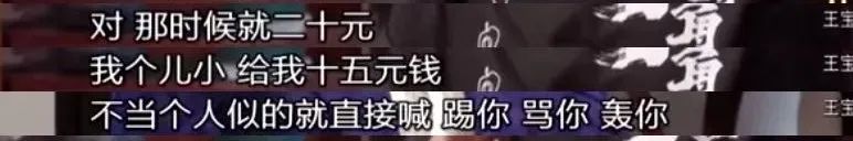 當羣演一天只有20,但因為王寶強個子小,他連這微薄薪水都要被藉口此理由而被苛扣,20變15。