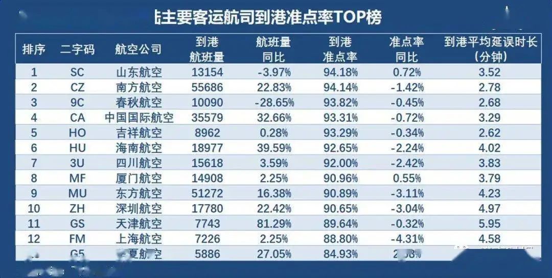 2019年,山東航空進入亞太地區大型航空公司到港準點率前10,國內第1。
