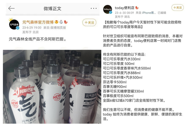 面對此次危機,目前已有品牌做出了應對之策:部分商超一口氣下架了所有含有阿斯巴甜的食品;元氣森林表示“全線產品不含阿斯巴甜“,新包裝上已做出註明“0阿巴斯甜”的醒目標誌;百事可樂則表示:”不打算改變其產品組合“會繼續添加阿斯巴甜;可口可樂目前還未做出回應……
