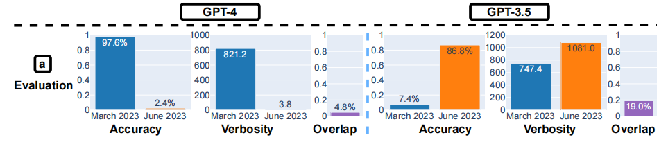 這還要從一份論文説起~該論文名為《ChatGPT的行為是如何隨時間變化的?》(How Is ChatGPT’s Behavior Changing over Time? ),來自斯坦福大學及加州大學伯克利分校的研究人員。論文評估了GPT-3.5和GPT-4在2023年3月和6月的變化。詭異的是GPT-3.5更智能了,但GPT-4更智障了。