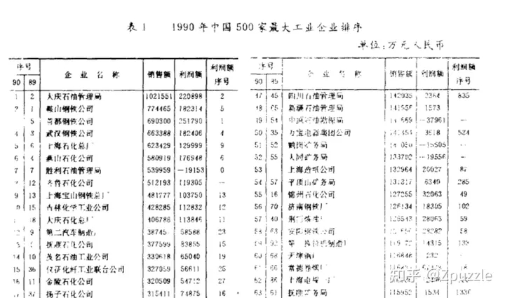 這是30年前,中國最大的工業企業的排名,基本上可以代表當時最好的一批企業: