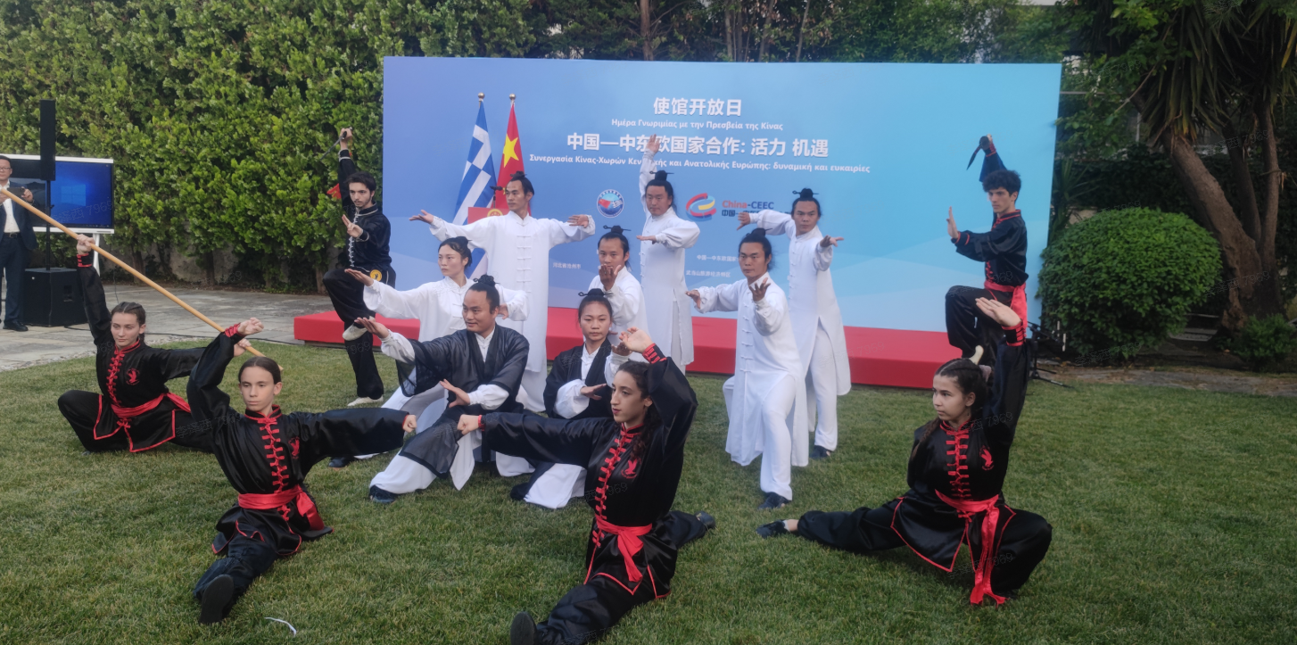 説到文化交流,必須提到本次東歐之行的中方主要“文化出口”,湖北武當武術表演。此行期間,我有幸觀摩了該團隊在希臘“仲夏端午中希文化交流節”活動、中國駐希臘大使館開放日和中國駐波蘭大使館的“中國文化日”招待會上的演出。