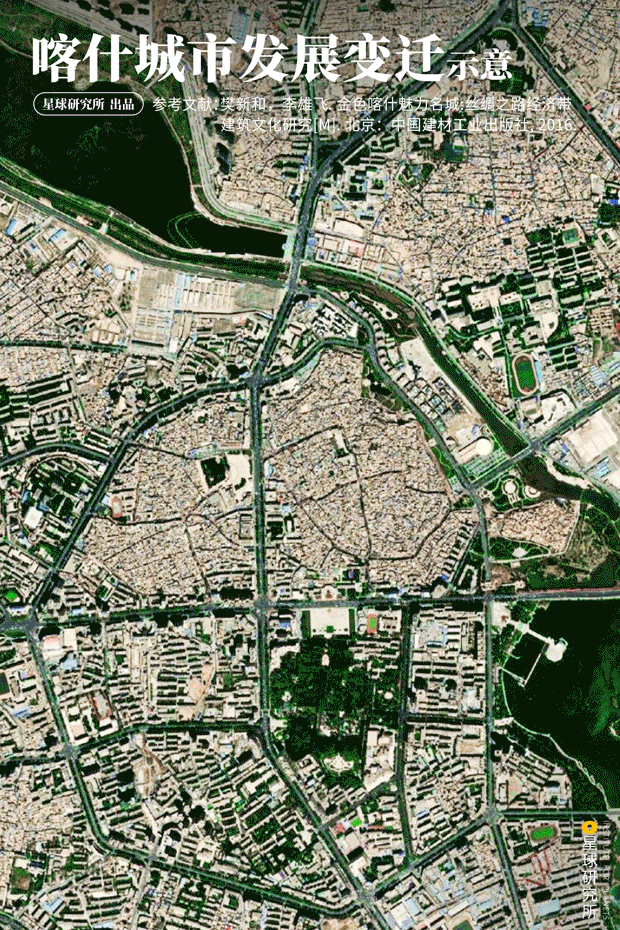 (喀什城市發展變遷示意,製圖@馮藝卓/星球研究所)