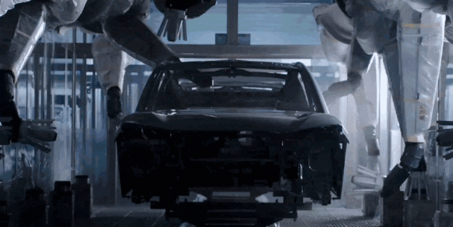 這些數據總不如親自看看感受深。我剛踏進蔚來總裝工廠,第一反應是:產量這麼大超級工廠為什麼工人這麼少?能看到的是地面上來往的機器人運貨車。雖然我對“先進製造“已經有了一定了解,但這種撲面而來的高科技製造衝擊力還是非常強,各種自動化、智能化的設備在車間裏把一個一個配件妥善安裝到生產線的汽車上,頗有一種秩序和韻律的美感。
