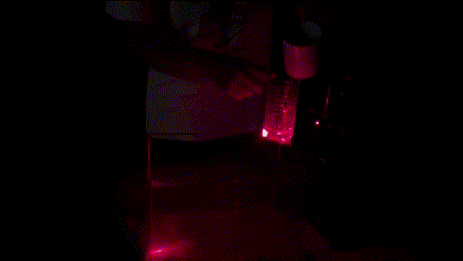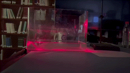 有趣的現象發生了:激光從小孔出來後並不是直直的射出了,而是隨着水流在“流”動,在改變位置!