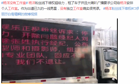 甚至還在線下租車維權,要求給楊洋獨立工作室。