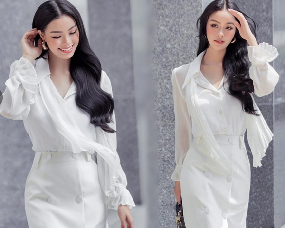 Y Nhi經常選擇單色服裝,以白色、米色等柔和的色彩為主。