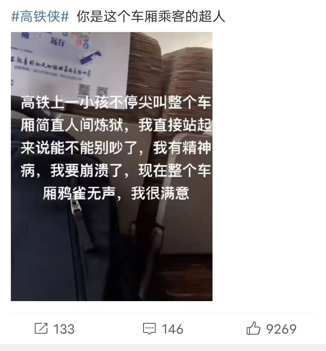 前有乘務員勸父母帶兒童離開車廂,後有大學生化身“高鐵俠”發瘋擊退吵鬧兒童。
