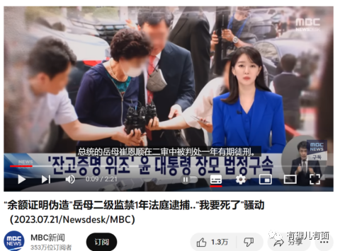 據韓聯社報道,韓國總統尹錫悦岳母崔恩順偽造銀行存款餘額證明書案二審21日宣判,法庭駁回被告人提出的上訴,判處崔恩順有期徒刑1年,維持一審判決,並將其當庭逮捕。