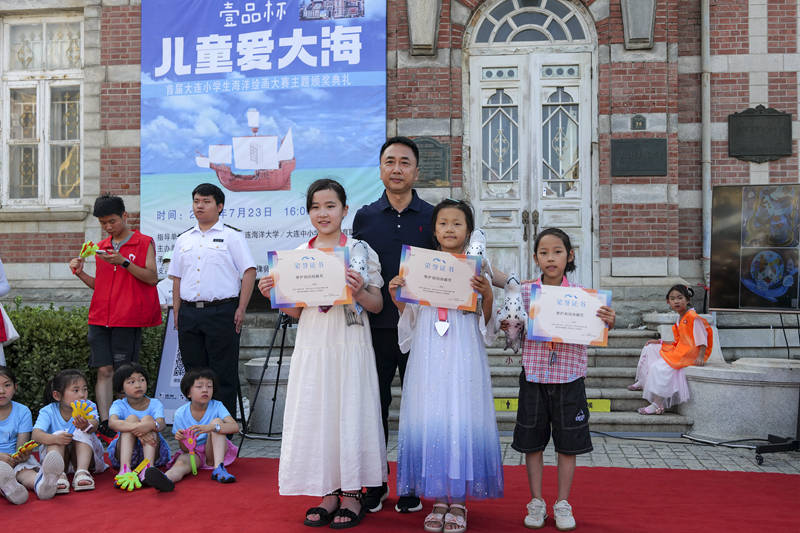 7月23日下午,兒童愛大海·首屆大連小學生海洋繪畫大賽暨“壹品杯” 主題頒獎典禮在大連百年老建築大連美術館小廣場舉辦。