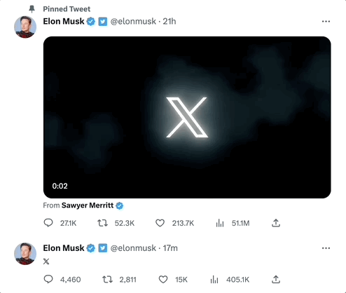 隨後他又連發多條推文,比如,可能會像這樣——X Logo放在黑色背景上。
