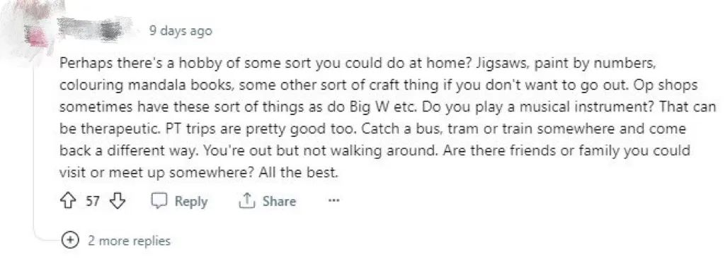 另一位網友也表示可以嘗試做自己喜歡的手工活動,像是拼圖、繪畫或者做一些手工藝品。