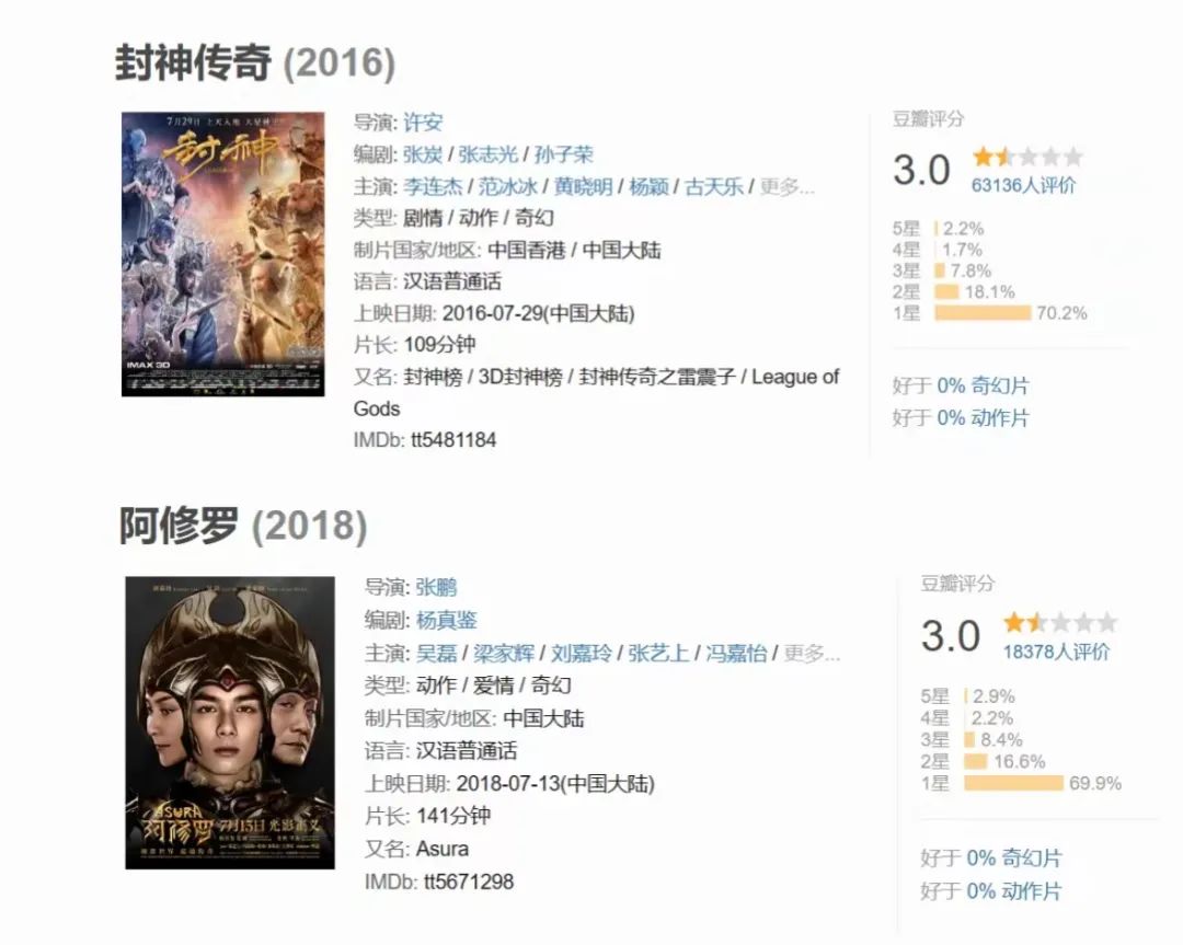 這也就解釋了為什麼《封神》明明水準還算不賴(甚至豆瓣的評分還漲了),但就是無法吸引觀眾走進電影院的原因。