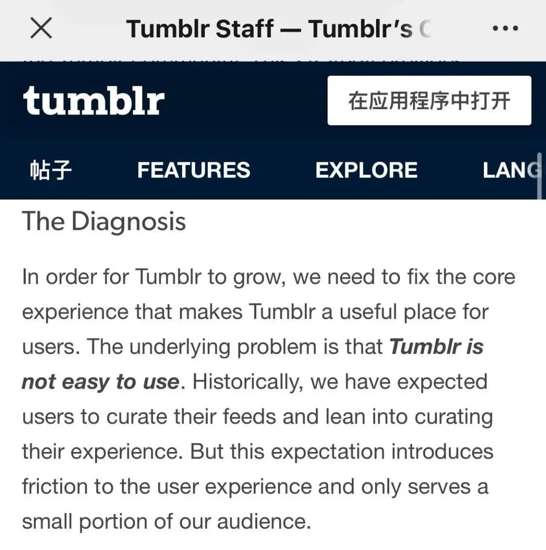 就在最近,我們發現個挺離譜的事,那就是不少人的青春回憶,曾經的社交 APP 巨頭 tumblr ,不但活的好好的,它甚至還打算趁推特虛弱,趕緊薅一票用户,以穢土轉生。