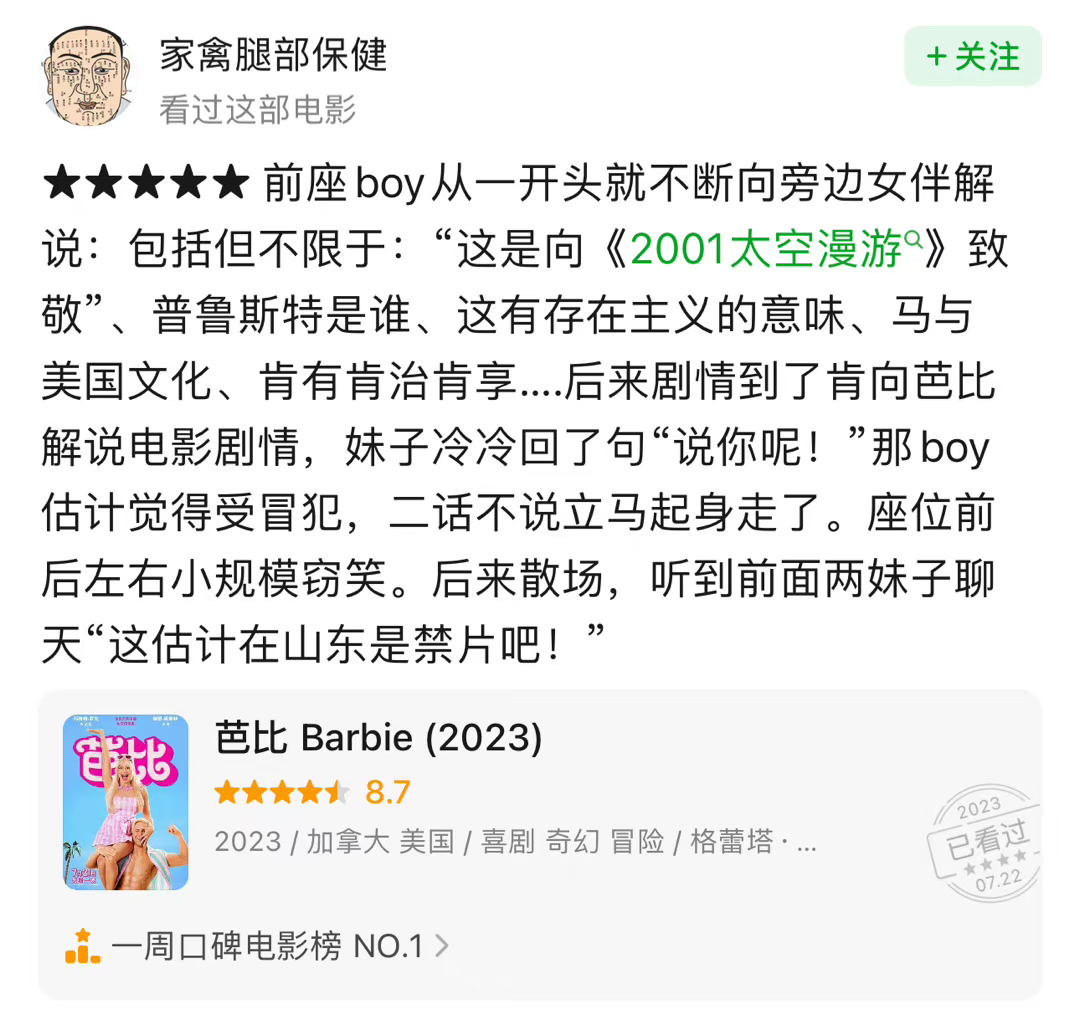豆瓣開分8.8、五天票房近億:《芭比》因“女權主義”賣爆?_風聞