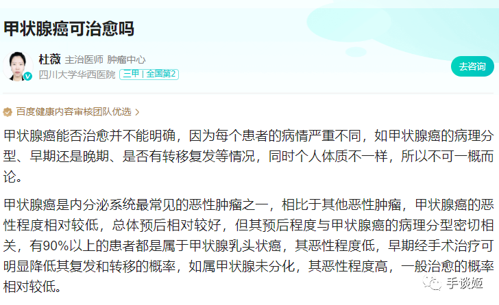 關於不要積壓負能量以及甲狀腺癌,手談姬特意去網上查詢了下,確實,甲狀腺癌是近年來發病率增速最快的惡性腫瘤,女性發病率高於男性,部分甲狀腺結節會變成甲狀腺癌,而生活壓力以及情緒問題與甲狀腺結節的產生有一定關係。