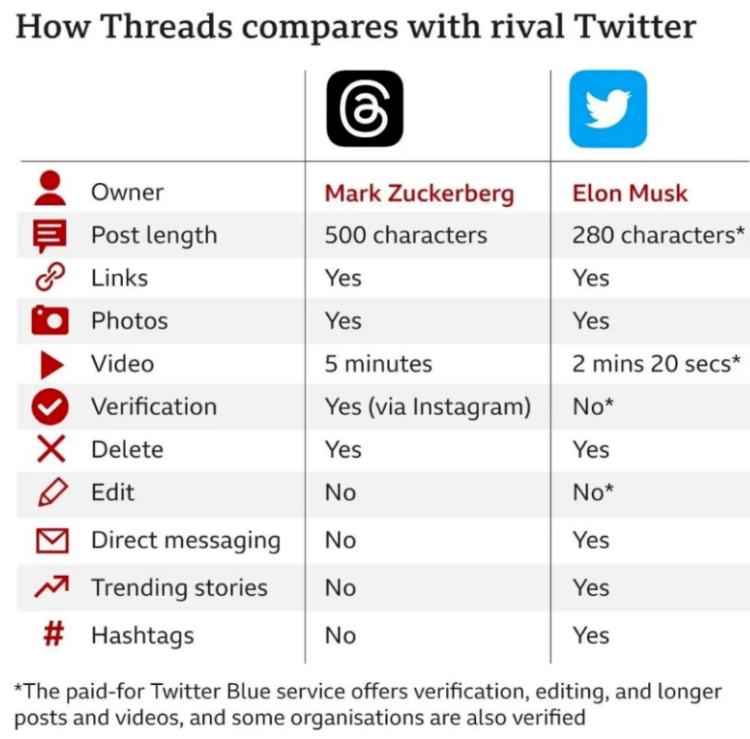 另一方面,推特目前所面臨的競爭正在不斷增多。Threads被譽為簡化為的推特,在其上線24小時內註冊用户超3000萬,僅用5天時間用户數量便突破一億,這一速度甚至趕超今年上半年爆火的Chat GPT。