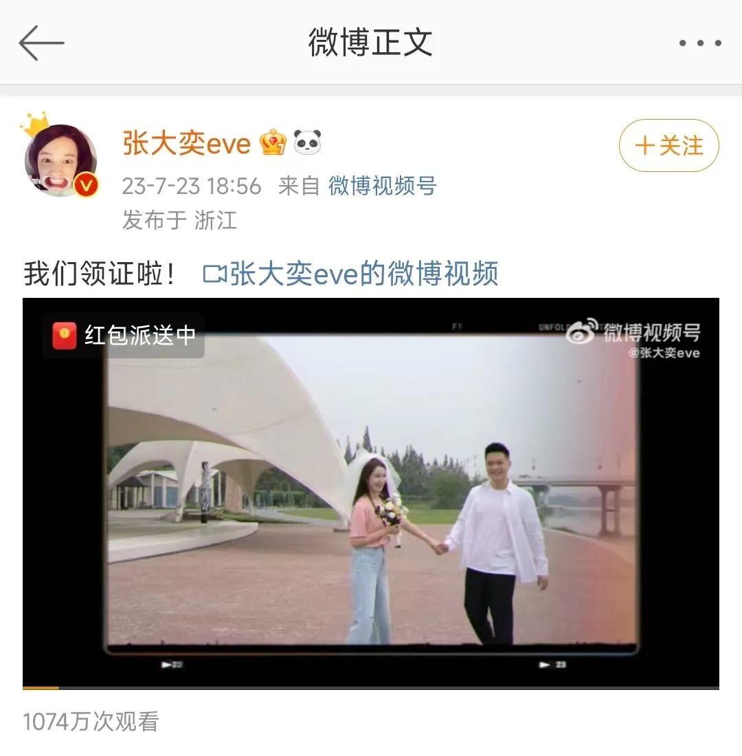 就在蔣凡重回阿里合夥人,再次躋身阿里核心權力層之列兩天後,網紅張大奕在微博官宣了自己與他人的領證喜訊。