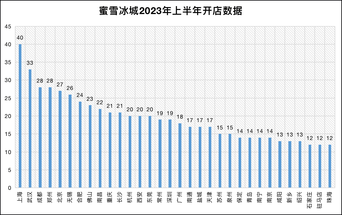 看一下雪王2023年的新開門店數據就知道了,前5個城市全部為省會城市,甚至包括上海、北京這樣的一線城市。