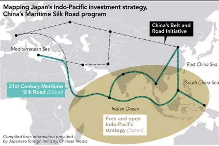 **1、**日本提出的“印太戰略”在國際上被諸多國家特別是被美、印、澳和歐洲國家接受,令日本在國際上的自信心大為提升,並將之視為重要的“外交資產”。
