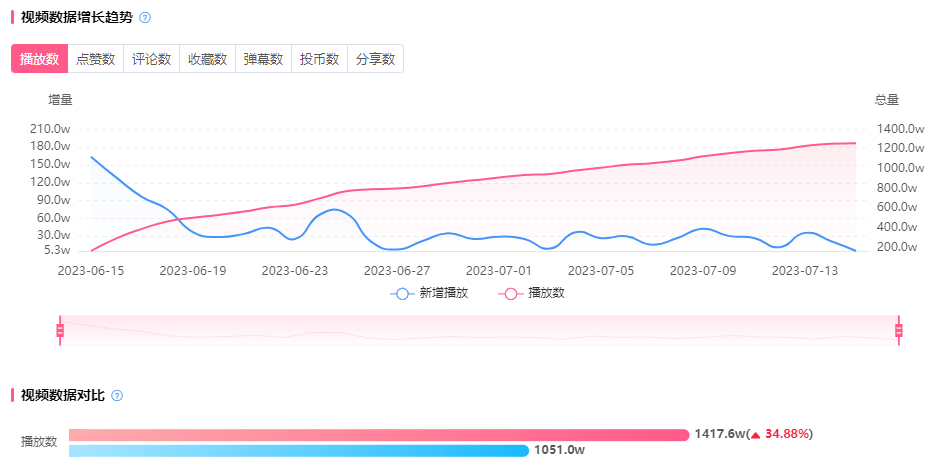 作為超頭部UP主,已經擁有大體量的粉絲,視頻流量在得到保證的情況下該視頻仍然有明顯的數據上升,單條視頻相比於日常平均數據,播放量增長近35%,綜合高達1417.6萬,播粉比131.73%,這也為拼多多大大增加了插播廣告和評論區置頂藍鏈的曝光度。