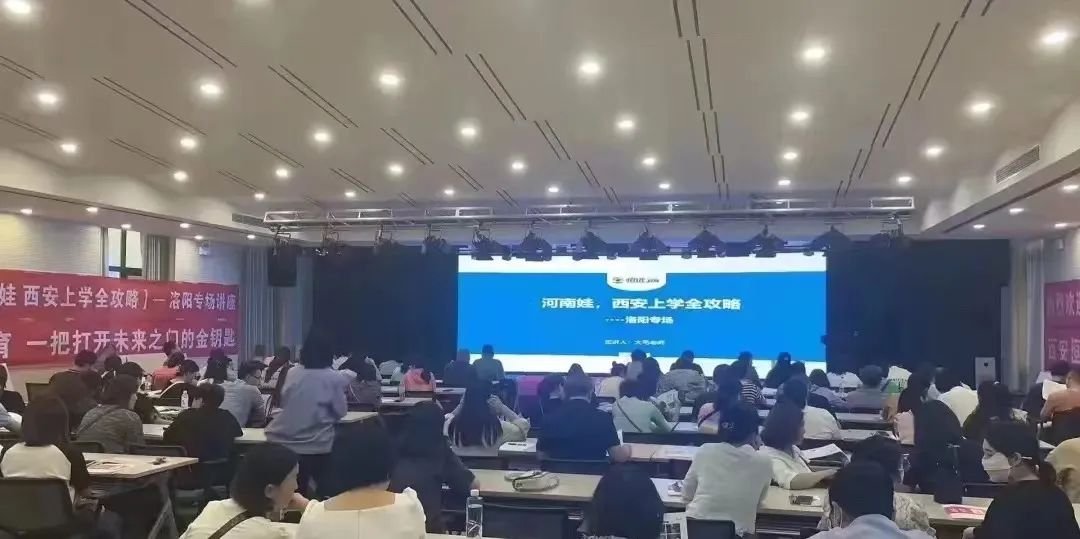 西安迴流生事情發酵之後,有讀者給我發了一張洛陽專場的考生升學規劃講座圖片,底下密密麻麻坐滿了人,都是洛陽的學生家長,講座主題非常鮮明,「河南娃-西安上學全攻略」,紅色橫幅上的標語更鮮明瞭: