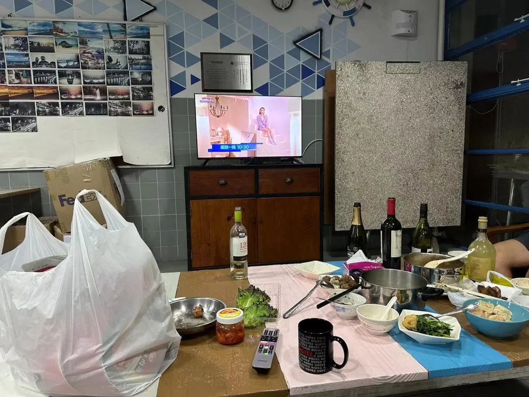我馬上跟隨他入了食堂,他們已經自帶食材,用共用廚房的設施做了很多湯湯菜菜。
