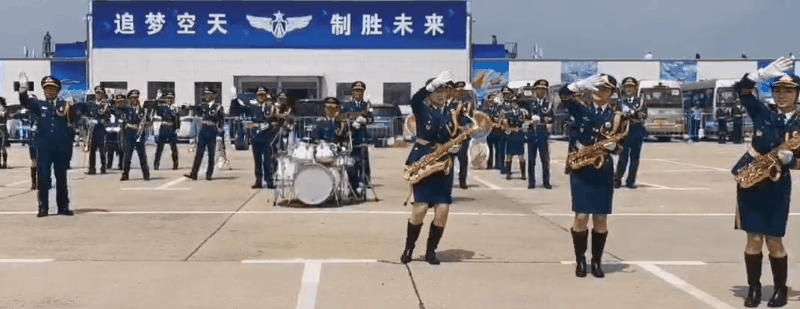 “嘿嘿嘿,飛機還是沒有軍樂團的小姐姐們好看…”