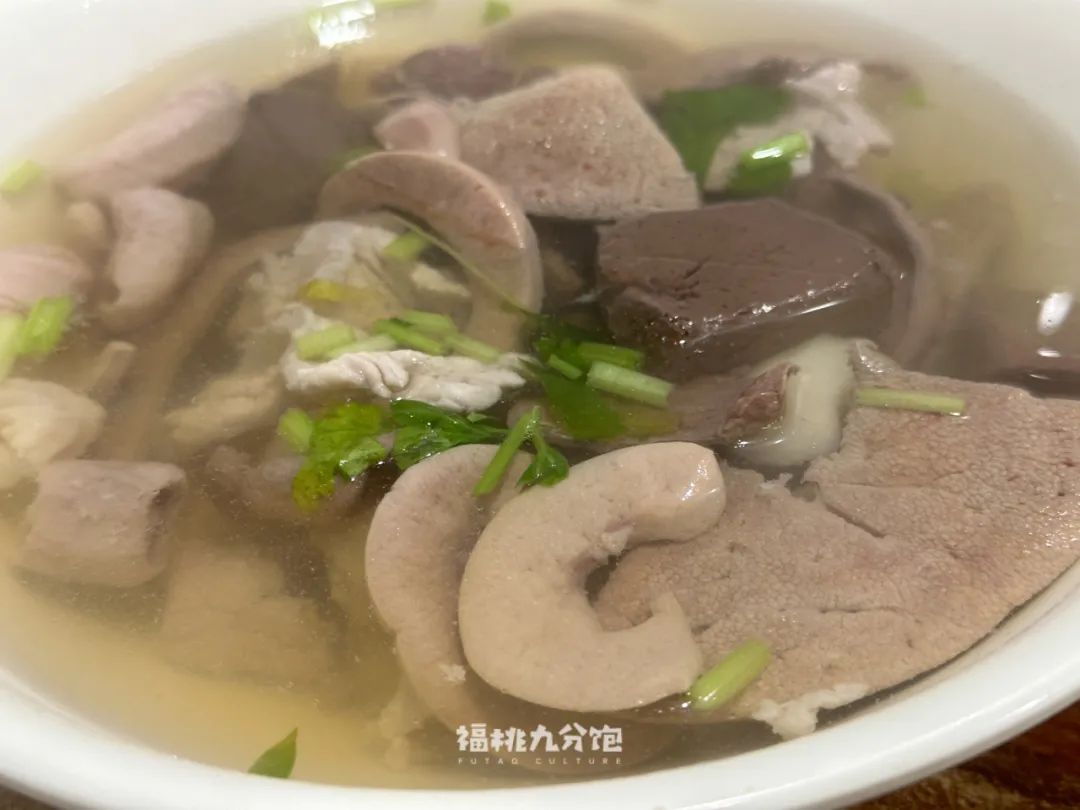 「正牌豆纖」是少數能在漳州市區吃到的豆纖麪店,它家的標配是鴨血和一些面線點綴。