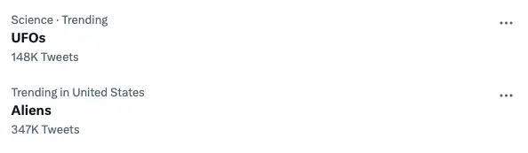 據外媒報道,這場聽證會一個很重要的目的就是為讓美國政府在UFO相關問題上更加透明——共和黨議員格羅斯曼Glenn Grothman表示,正在因為美國政府在UFO問題上幾十年來一直缺乏透明度,才導致瘋狂的猜測和爭論,但不可否認的是,這場聽證會上所爆料的存在UFO和外星人的信息,也成了社交媒體上的一個炸點: