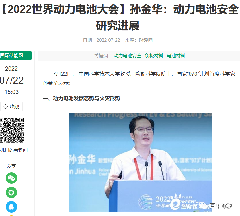 這情緒價值確實太差了,還是找專業人士看數據更靠譜。2022年7月22日,中國科學技術大學教授、歐盟科學院院士、國家“973”計劃首席科學家孫金華,在出席2022世界動力電池大會“全球先進動力電池前瞻技術突破”專題論壇時,曾作過一個題為《動力電池安全研究進展》的主題演講。