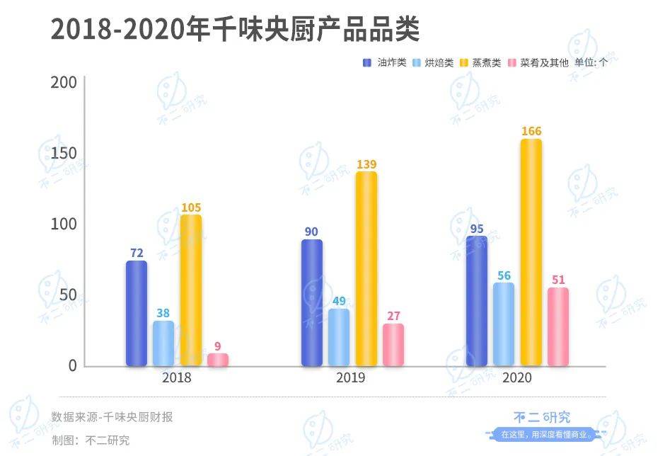 而千味央廚則公佈了其詳細SKU分佈,截止2020年底共擁有368個產品品類,包括95個油炸類產品、56個烘焙類產品、166個蒸煮類產品、51個菜餚類及其他產品。