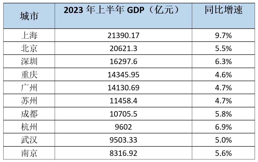 今年上半年GDP十強城市出爐,杭州武漢易位_風聞