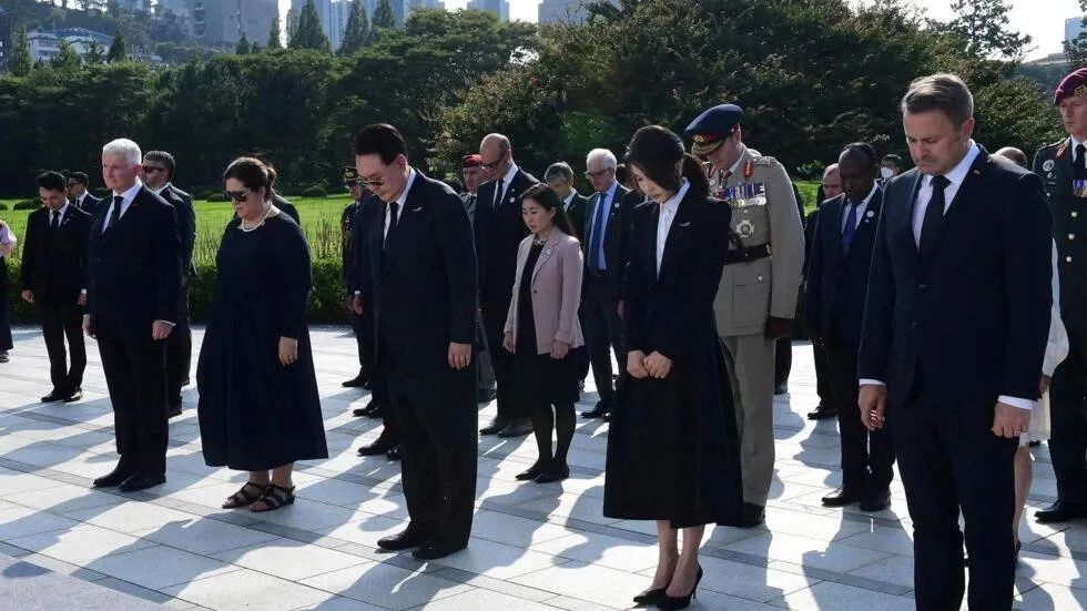 就在金正恩於平壤接待紹伊古和中國黨政代表團之際,韓國方面也沒閒着。7月27日,總統尹錫悦和夫人以及多國貴賓去到位於釜山的聯合國紀念墓園拜謁。