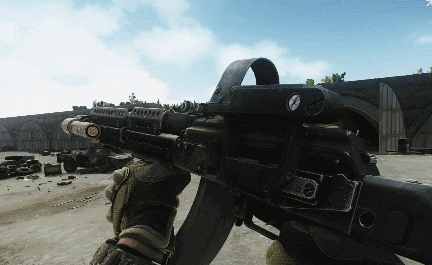 而且,如果各位射擊遊戲玩的比較多,就會發現,怎麼有的遊戲OKP-7的分劃在槍的正上方,還有的就在左側方了呢?這樣歪着的分劃也能打中人嗎?
