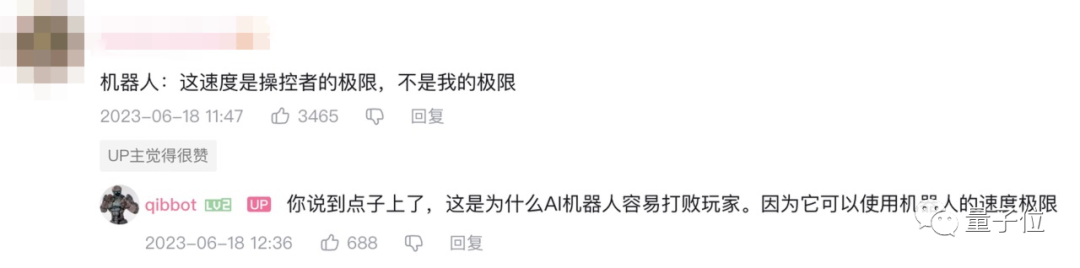 對QIBBOT速度快這一點,B站網友們紛紛表示認同,甚至認為操控者的速度才是機器人速度的極限: