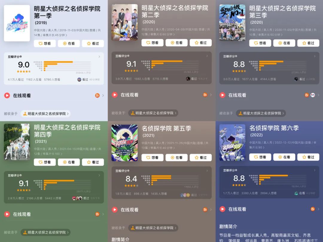 而《名學》顯然也繼承了《密逃·大神版》的高口碑和高質量,以給《明星大偵探》尋找偵探助理而測試候選人為由頭,第一季的《名學》最終摘得9.0的豆瓣評分,讓這檔衍生綜藝在觀眾層面有了繼續下去的動力。