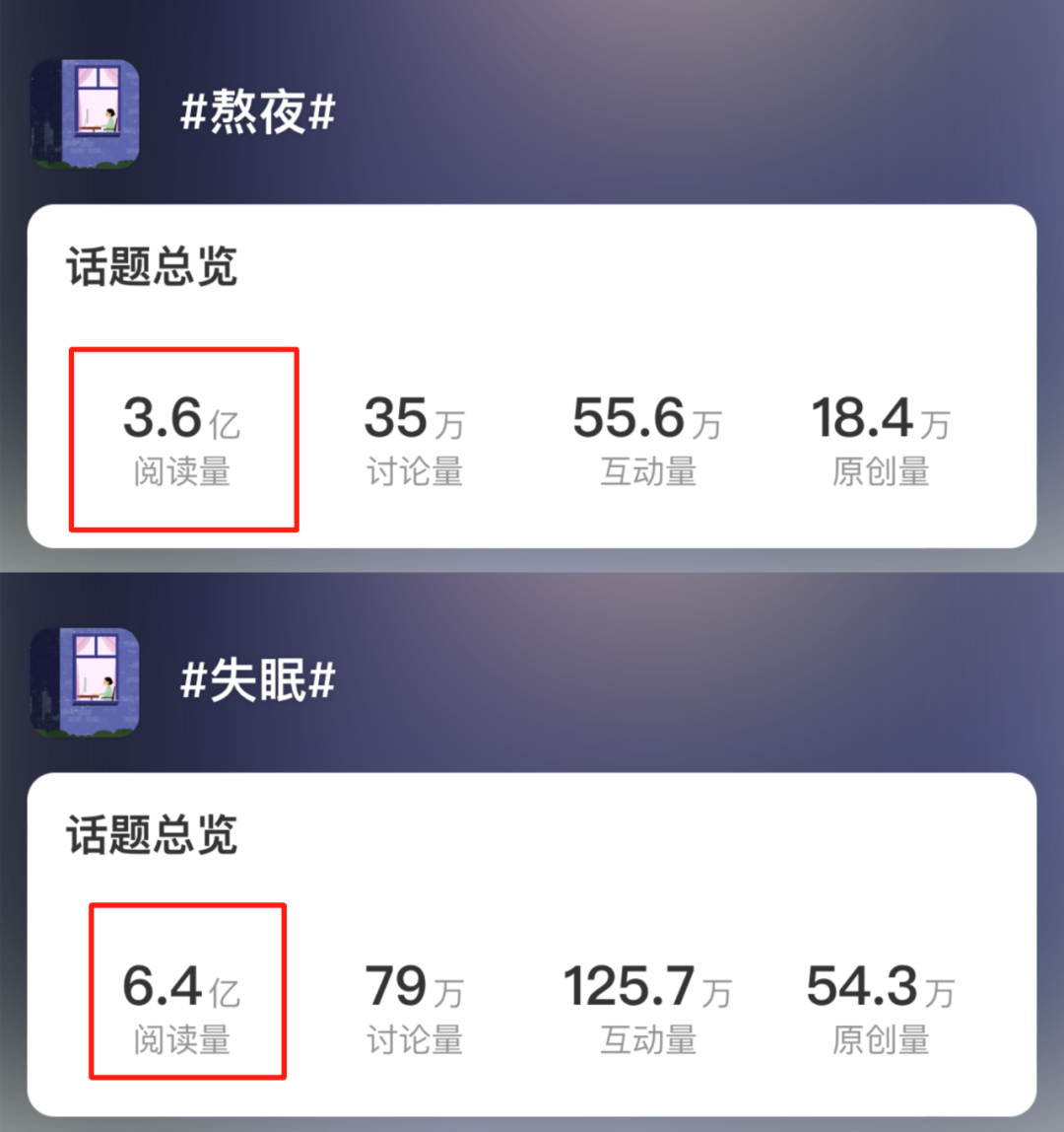 △ 微博話題#失眠#閲讀量超6.4億,#熬夜#閲讀量超3.6億