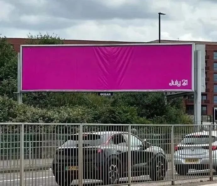 比如在高速公路的廣告牌上,放一張沒有內容的宣傳海報,只有芭比粉。