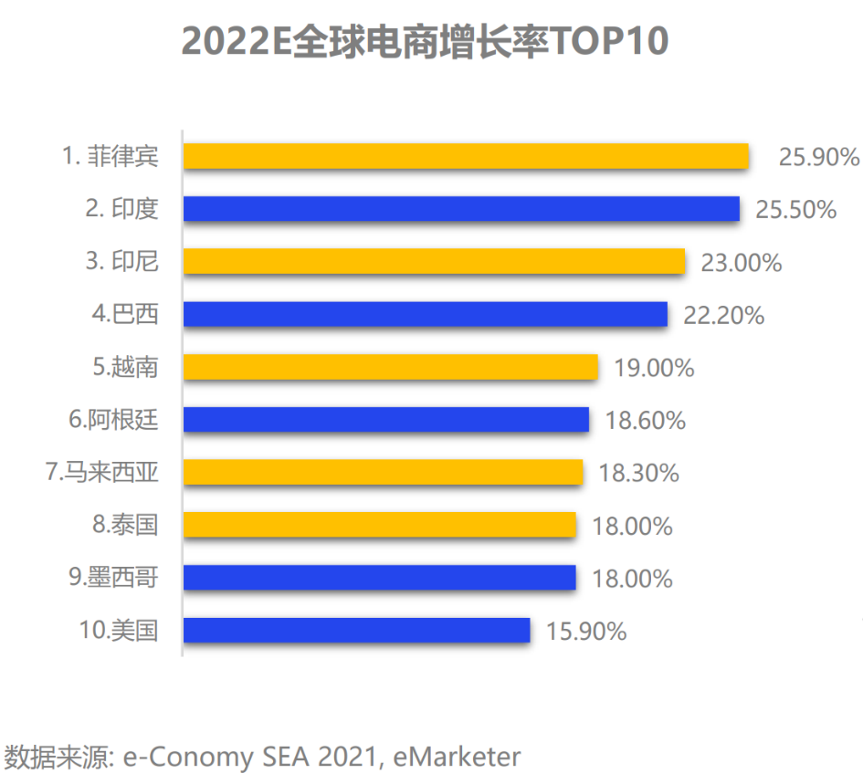 圖:2022E全球電商增長率,來源:e-Conomy,億邦智庫