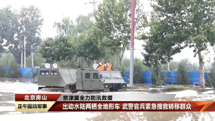 而在北京、河北地區的搶險救災工作中,一些軍用裝備,或者軍民兩用裝備也發揮了重要作用,比如在北京門頭溝、房山等地洪澇災害期間,就有人拍到了北方工業又把他們的全地形車開到了大路上,在齊腰深的水中如履平地,成功接運了大量遇險人員離開危險區域。